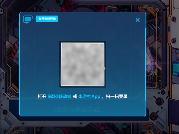 2.点击登录页面左上方的扫码选项,随后使用手机bilibili服的手机客户端扫码,这样就可以在电脑上登录游玩手机版崩坏3了。