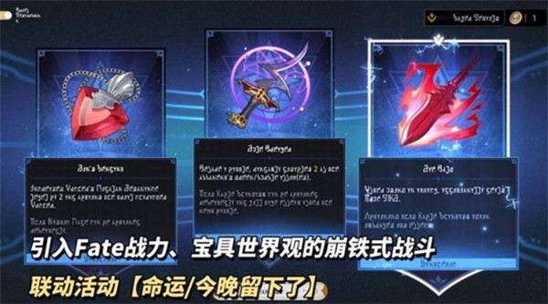 命运·今晚留下了:融合Fate设定的新战斗玩法,包含职阶、宝具、咒令、羁绊棋子系统
