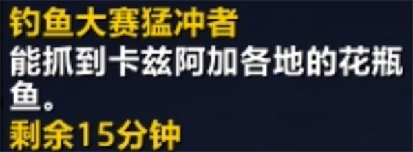 接任务后自动获得“钓鱼大赛猛冲者”BUFF,持续时间为1小时,期间必须完成所有鱼类捕捞。