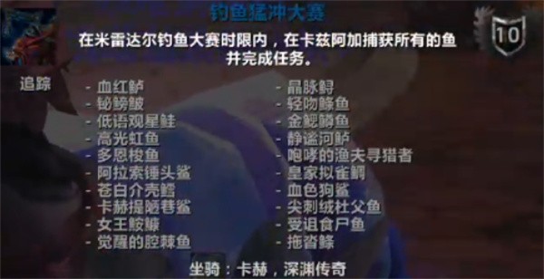 魔兽世界钓鱼猛冲大赛成就如何完成?接下来小编将为大家介绍,这个钓鱼大赛需要掉哪些鱼,如何接取任务,让大家都能一口气完成,顺利的领取坐骑的奖励。