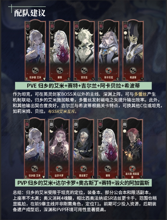 银与绯归乡的艾米阵容怎么搭配?归乡的艾米作为当下最为热门的角色,接下来小编将为大家介绍一下任何进行搭配,将你的归乡的艾米角色的战力发挥到最大。