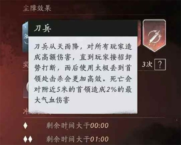 刀兵需先在红圈内“卸势”,随后使用太极拉近Boss身边击杀。
