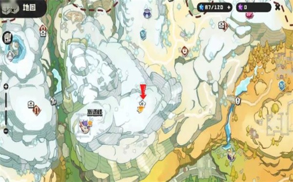 打开地图后向右侧移动,按照红色箭头提示即可到达。