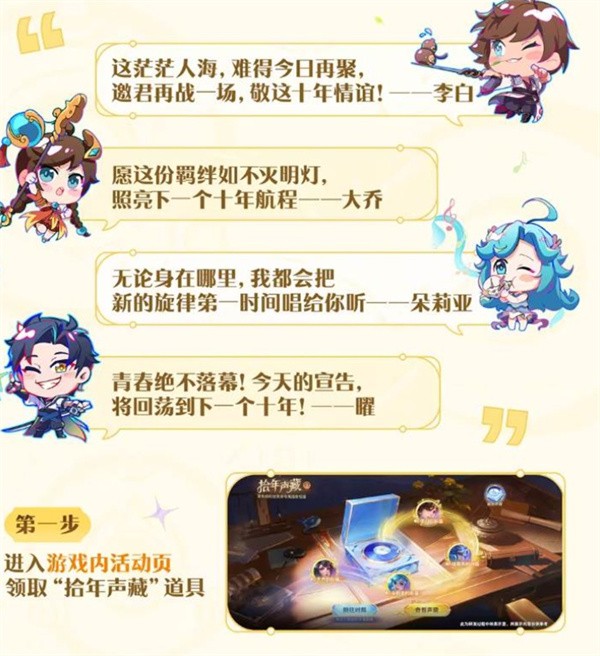 玩家首次进入活动系统后,“拾年声藏”道具将自动发放至背包。