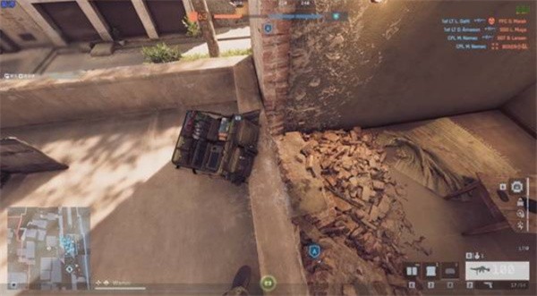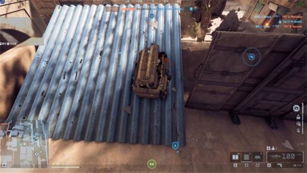 到达A点后上楼架盾,将补给包放置在蓝色铁皮边沿或墙角位置。