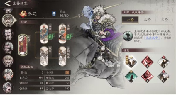 张辽拥有极强的机动性和连续行动能力,当命中三个目标后可立即再次出手。其多回合连动特性让他能持续输出,同时凭借高闪避有效规避伤害,是阵容中的灵活爆发点。