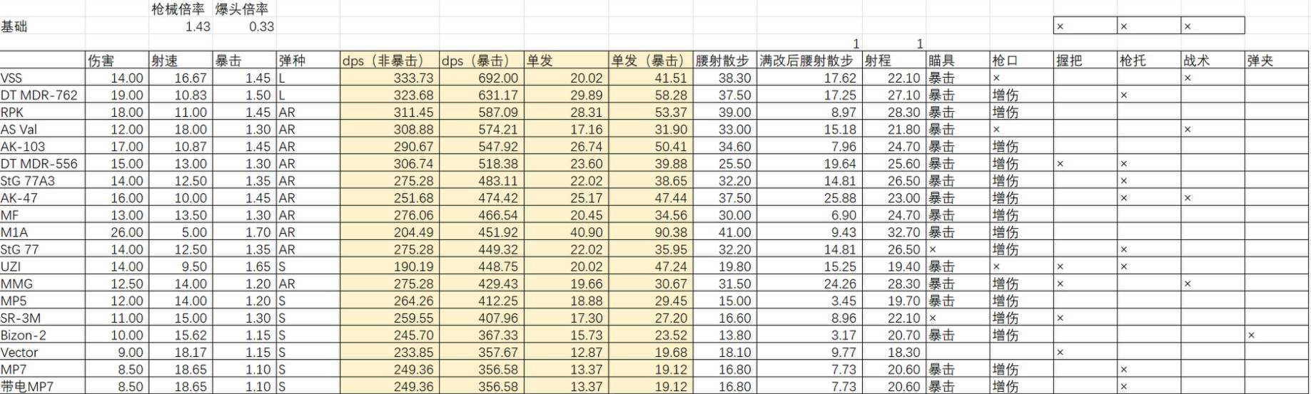 简单做了一张图,因为我没有拿到所有的枪械,所以肯定不全。