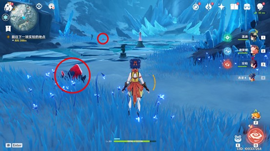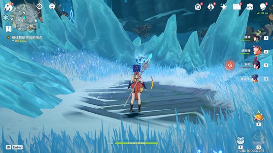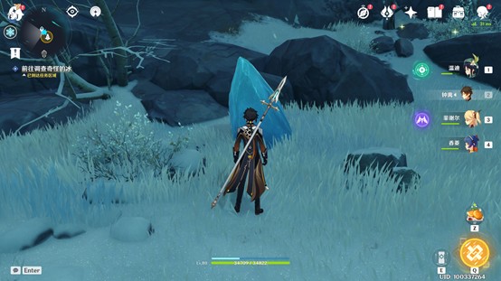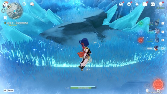 2、完成冰湖中央的挑战任务后屏障解除,搜寻周边的深赤之石击破坚冰。