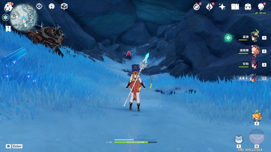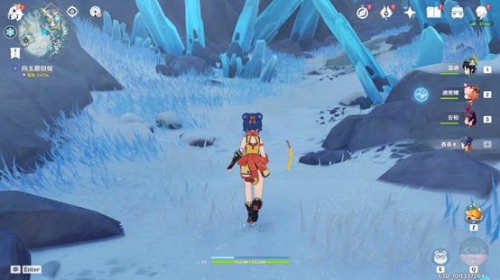 3、得知蓝色植物包围的古代坚冰中藏有碎片,继续探寻雪山。
