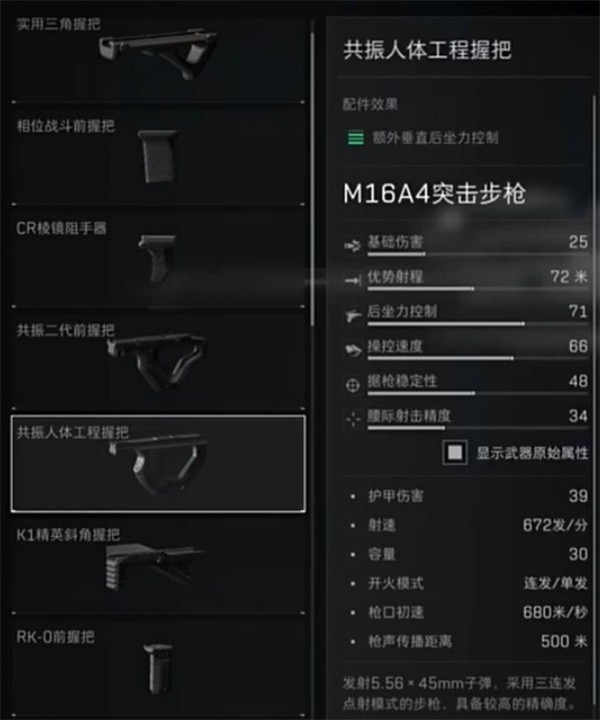 握把:人体工程学握把(降低垂直后坐力,提高连射控制)。