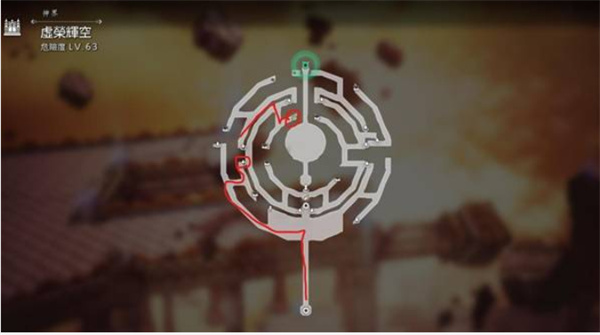 1、推进剧情进入【虚荣辉空】区域,,按下图红色路线前进,沿主路向上前往第二层