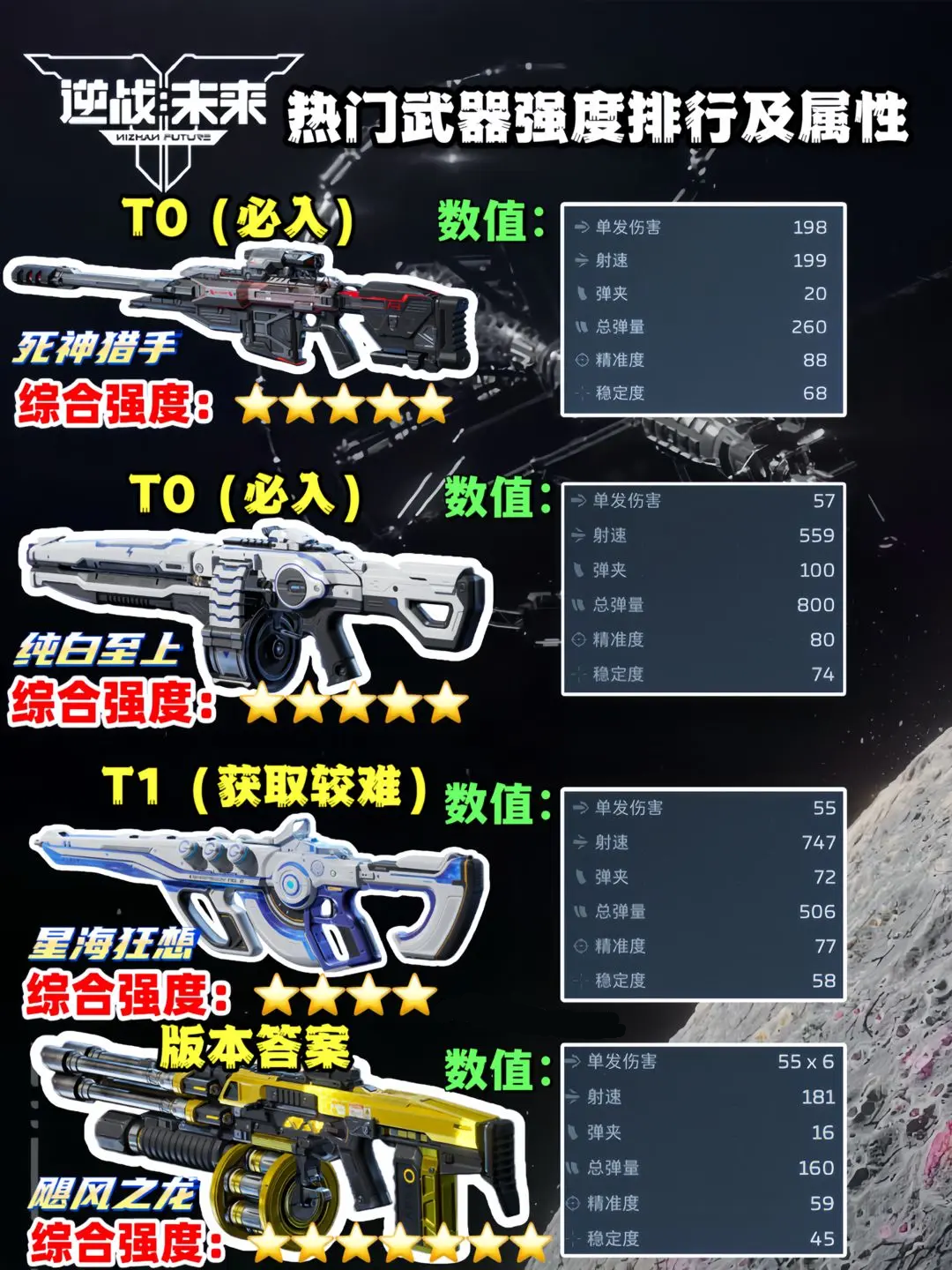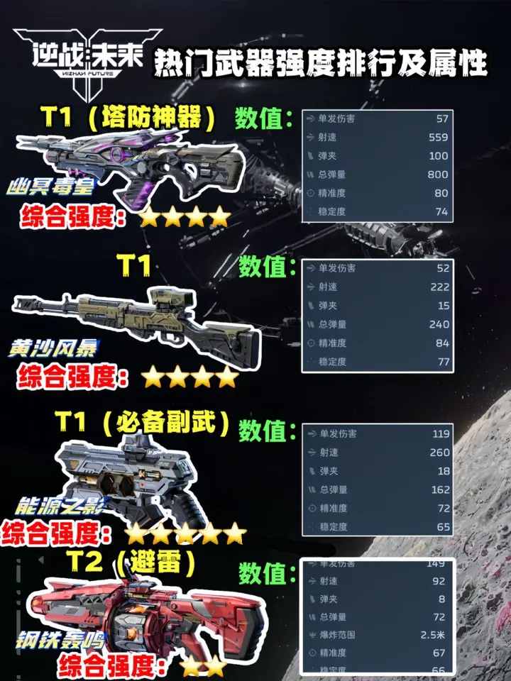 在逆战未来中,有着丰富的武器装备能够选择和使用,每种武器都有不同的数值和性能,玩家能够根据自己的需求来选择和使用,今天小编将为大家带来逆战未来武器强度榜分析一览,供有需要的玩家进行参考。