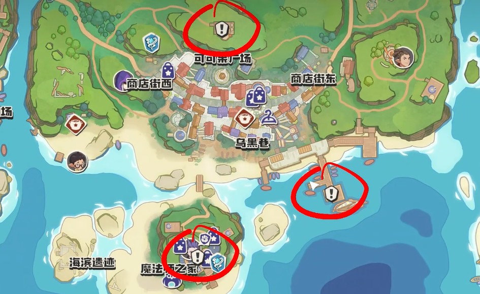 除了这三个隐藏点,地图上还有几个特殊地点也能当传送点用,分别是眠枭庇护所、炼金锅,还有隐藏遗迹。遗迹那个需要提前去跟它交互一下才能解锁,不需要真的进遗迹里面,在门口点一下就行。这些传送点,在后期抓精灵,或者刷材料的时候特别好用,某些地点跑过去要走很久,有传送点的话,直接过去就行了。