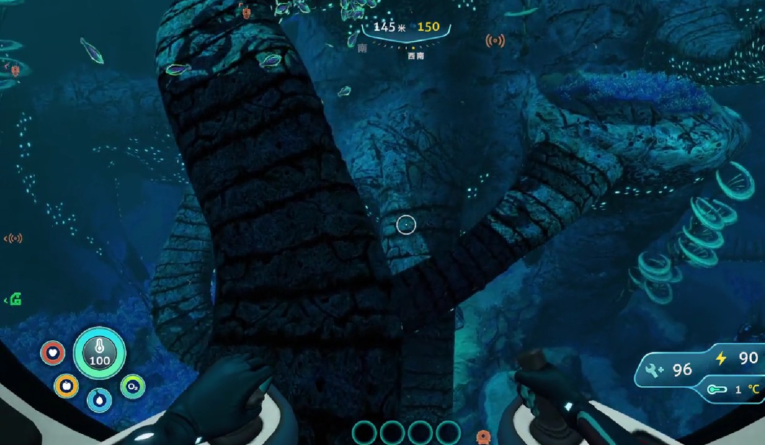 随着游戏不断深入,玩家已经解锁了更高的潜水装备,这时候探索范围就开始扩大,玩家可以来到玛格丽特基地下方的矿脉。