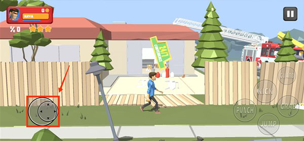 6、当敌人出现时,我们可以点击右侧的PUCH、KICK、JUMP、GRAB按钮来攻击和躲避敌人,