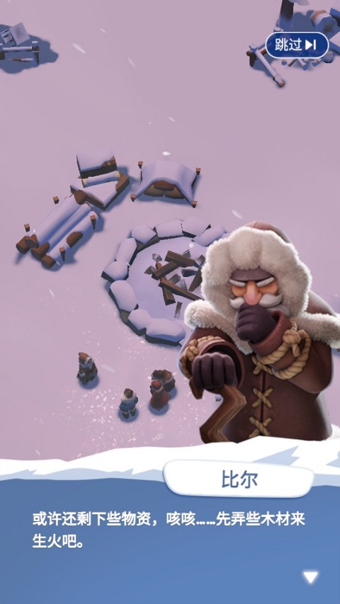 游戏开始会有简短的剧情引导,首先要抵抗严寒的重要工具便是火种,通过收集木材来生火。