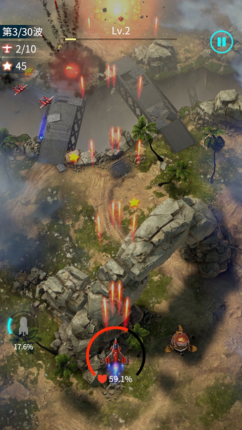 2,丰富的战机武器装备自由搭配,提升战机的属性。