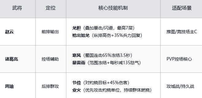 核心组合:诸葛亮(控场)+赵云(主C)+徐庶(连击触发器)