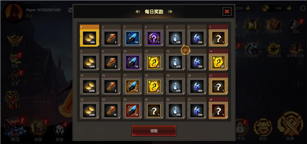 2、然后是每日奖励,里面有大量的金币和各种装备奖励