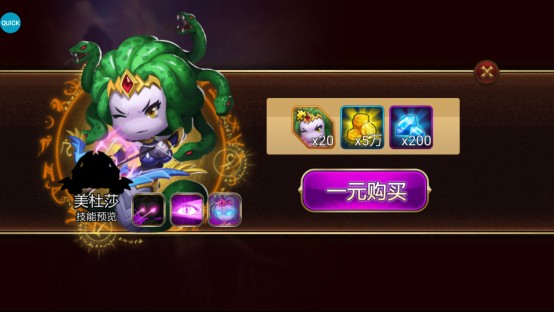 限定英雄建议一定要买,1元就能获得一个S级的极品英雄美杜莎,获得该英雄后可以把所有的资源全部培养它,前期所有的关卡基本都能全部过完