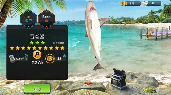 成功制服后,点击屏幕中央“领取”按钮,收获鱼类、金币与经验