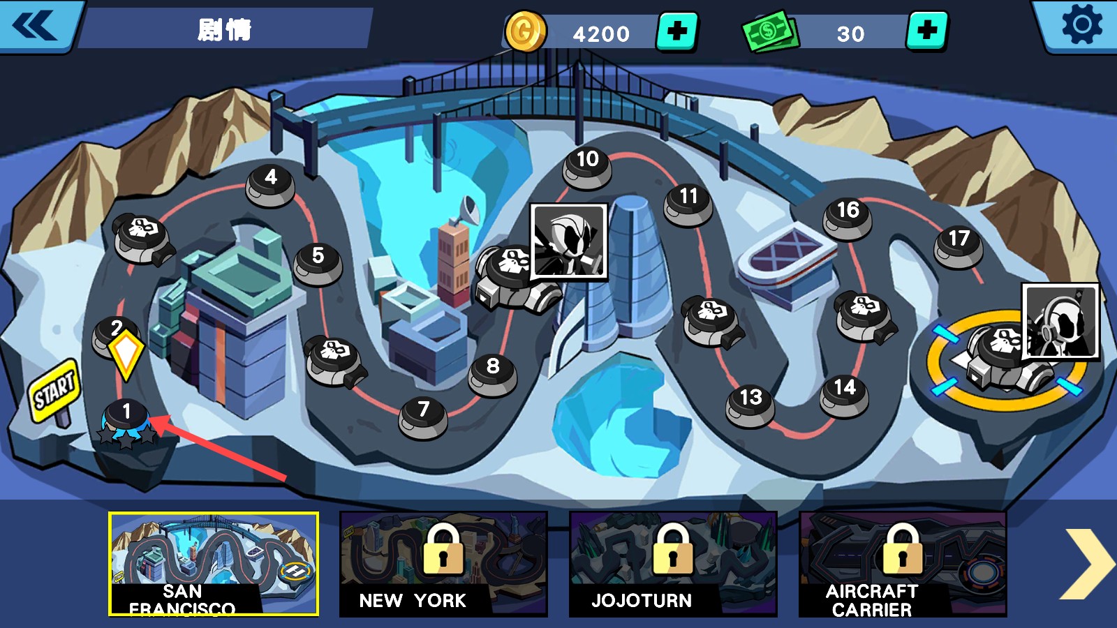 3、最后,玩家点击图标指示进入第一关即可游玩