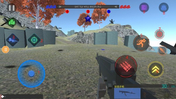3、进入游戏后控制左侧摇杆进行移动,右侧按钮进行射击。