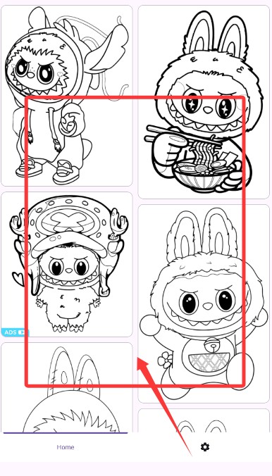 1、启动游戏后,会出现各种可爱的拉布布角色线稿供你选择。