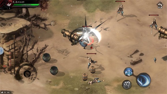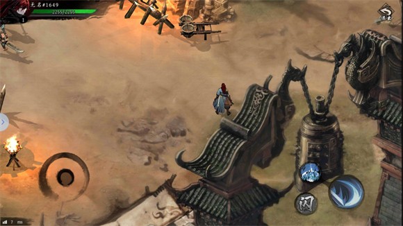 3、进入地图后左边控制角色的移动,右边是角色的技能、攻击和闪避按键。