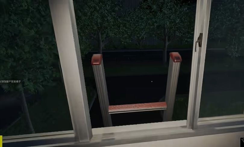 发现了附楼的一个开着的窗户,为了安全下去,需要一个梯子。