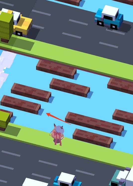 4、过河的时候也要观察水流的方向,等桥都连成一条线的时候快速跳过去