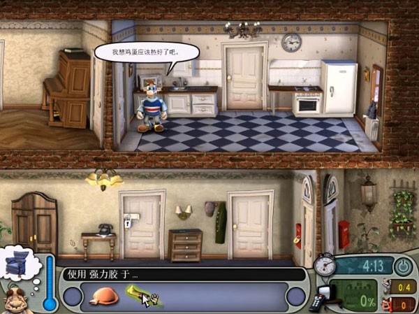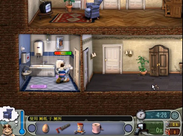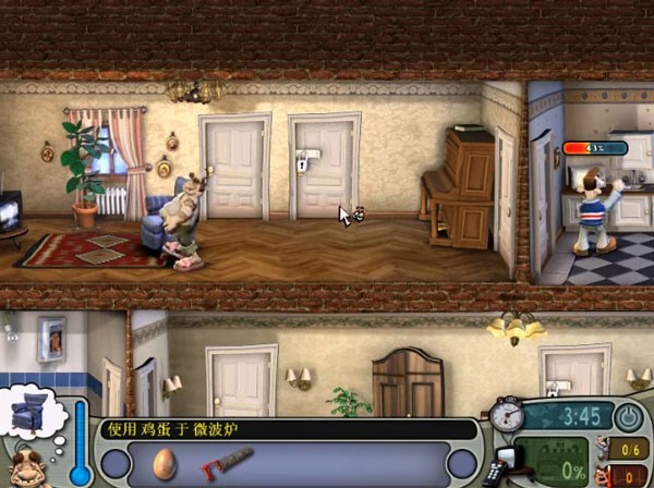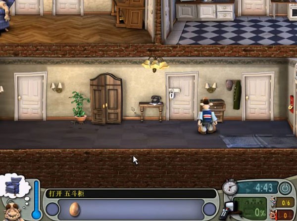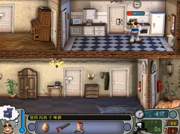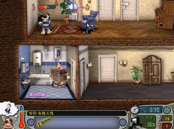 7、趁邻居去卫生间的时候使用电视天线,并将锯子破坏沙发,之后回到门厅就可以看到邻居被整蛊的瞬间了