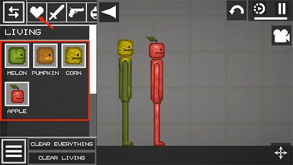 5、选择【爱心】图标,包括西瓜人、南瓜人、玉米人和西瓜人四位人物,拖动他即可放置在地面上,