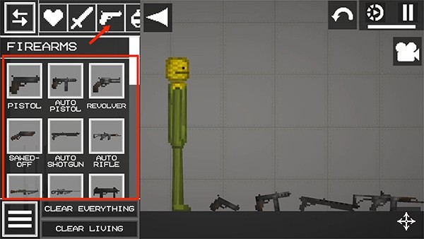 7、选择【手枪】图标,包括手枪、散弹枪、步枪、冲锋枪等不同类型的枪支,