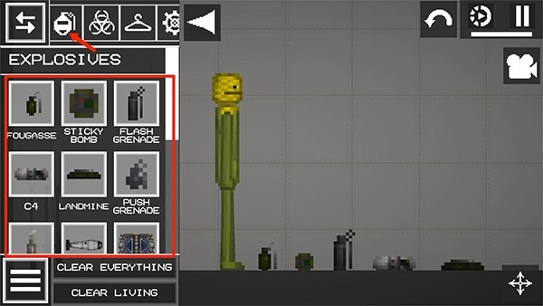 8、选择【手雷】图标,包括手榴弹、C4、地雷等不同类型的炸弹,
