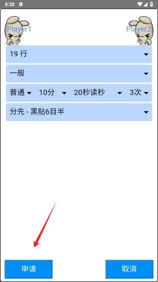 3、设置相关的围棋对局条件,继续点击申请