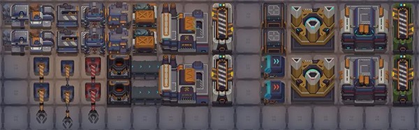 3、物品无处安放,堆积到了传送带上,让我们按照上面的方法建造一个储物间,储物间是由容量的,记得及时把物品取走哦。