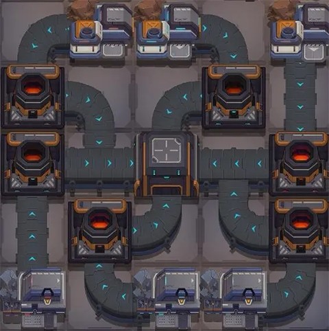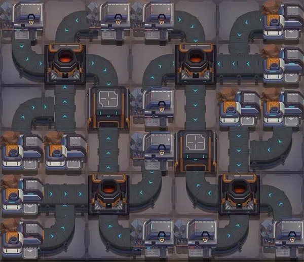 最高二级建筑(两个油厂一级就够,下图是两个模块中心对称拼起来的,拆开用也可以,缺点是混料供应有可能在摆图后卡料,手动一键收集几次后就可以疏通。产值:0.4636,产值教学在本帖第三部分):