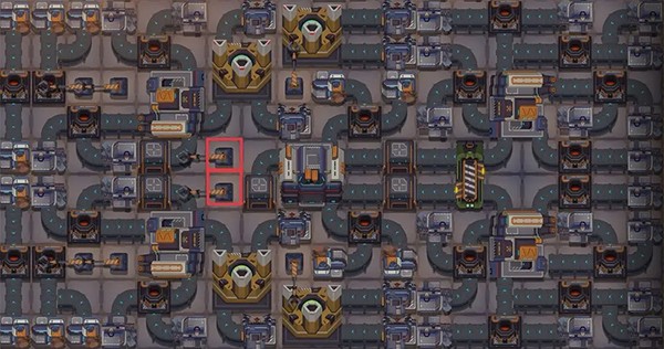 实在需要钢板绝缘线了,就把红框两个长机械臂调到其他方向即可,这样左半侧产出的钢板绝缘线会留存下来,右半侧产出的钢板螺丝则会继续用来生产内燃机。