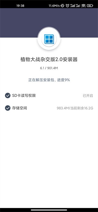 1、下载完成后,是一个安装器,需要点击安装,授予相关权限,打开等待解压完成