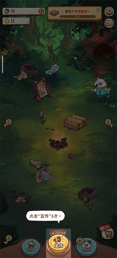 5、客人用餐结束后,会付橡树果,需要点击拾取