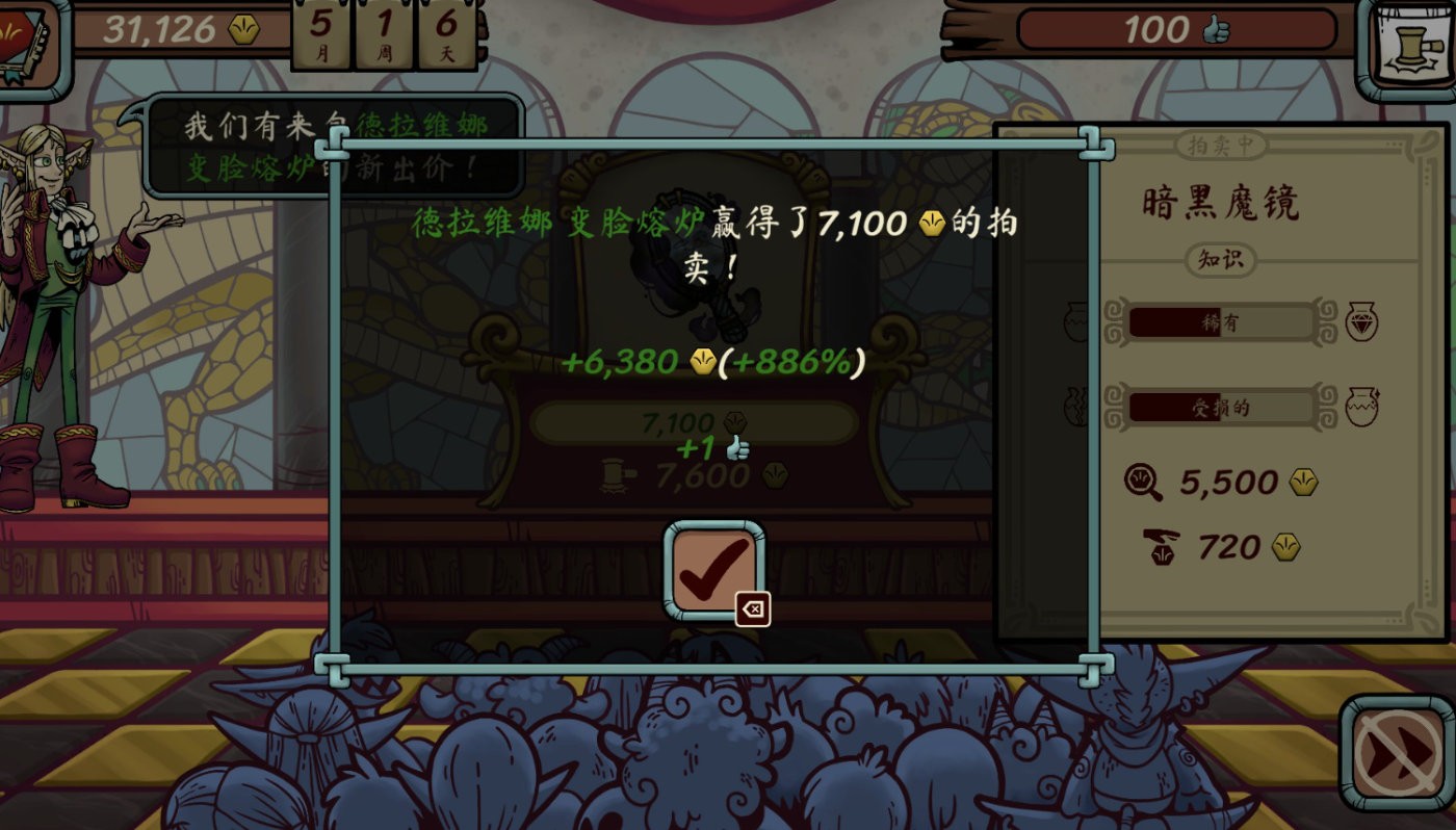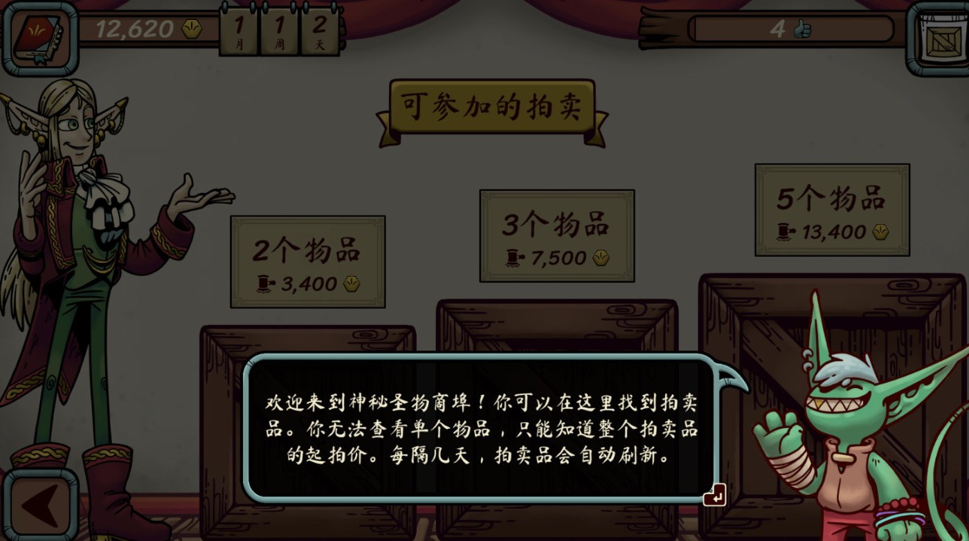除了拍卖会与能提供贷款的银行(在游戏里我就没贷过款),游戏里还有其他设置,但没实装,像斗兽场药水店之类的,伙伴系统实装了,但数值还比较爆炸。几百块钱能招个3技能初始的,也能花冤枉钱几千才招个只有单技能的。我们的人才市场价格才没这么混乱,而且同伴成长后,只加了一个技能,做药水的效率反而降了,但我们需要给伙伴的钱却增加了很多。