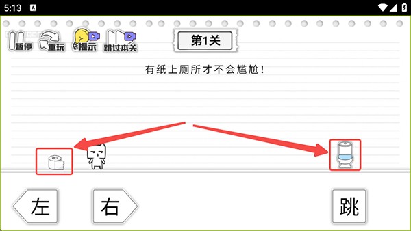 2、游戏关卡玩法简单,玩家需要控制小猫咪拾取纸巾,然后坐在马桶上上厕所即可。