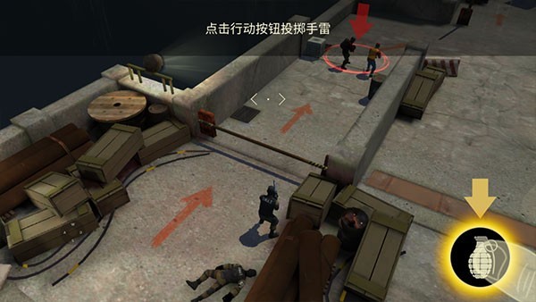 5、敌人较多时,还可以点击右侧炸弹图标,瞄准并投掷手雷,开始自由探索射击。
