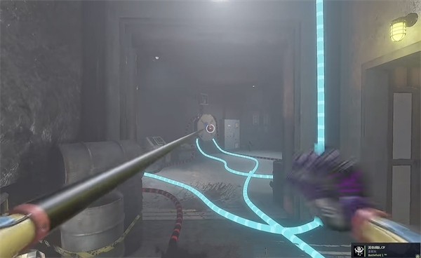 6、开门之后走里面还会有一个开关给他拉下来,往前走进去用蓝色手臂互动一下前面的开关,这里要触发三个开关才能有电流打通出口