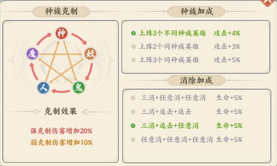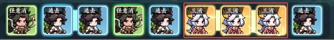 这类英雄在战斗中的最强技能效果,需要依靠自身的三消来触发,即常见三消游戏中的三连消除。