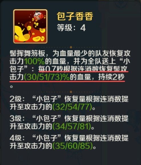虽然她的消除技【包子香香】中也写到了会根据连消数为我方全体回复不同档位的生命值;