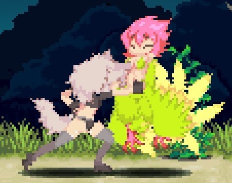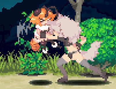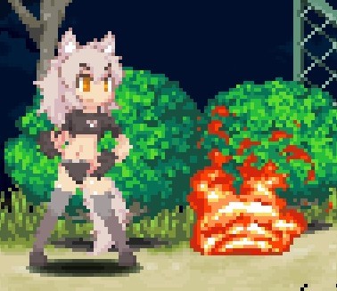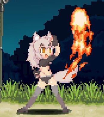 下蹲攻击钩脚(古烈踢),唯一对空稍微能用的招,用来对付例如羽毛哈比或者陨石之类的,可使地面的小型怪打出浮空效果,由于自机对空残念导致实用性不高,可接空中下A攻击