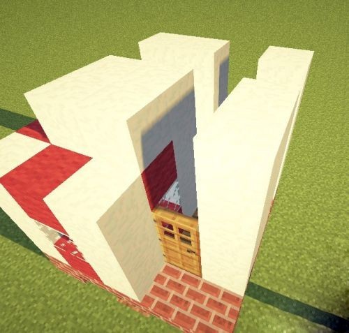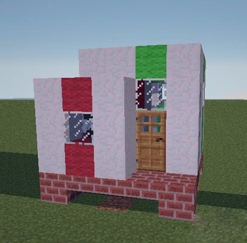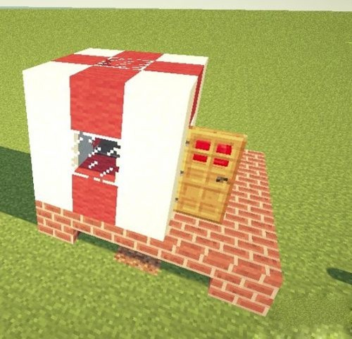 6、再以床的全红色部分为中心向左延伸 2格,向右1格,等于边长=4的正方体支柱,这里要注意的是,为了显得更有层次,所以绿色颜色带的位置不要选在褐红色颜色带的位置平行。