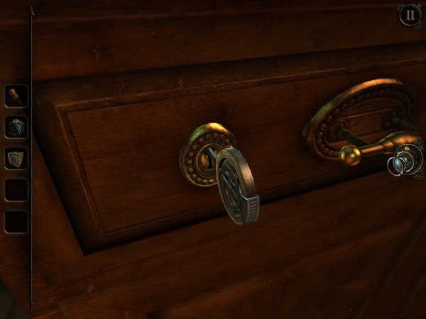 这个装置比较精密,转动一下上面的机关,它就会变成一条钥匙。获得钥匙后,移步至书房(第一个房间)探索未曾动过的书柜。